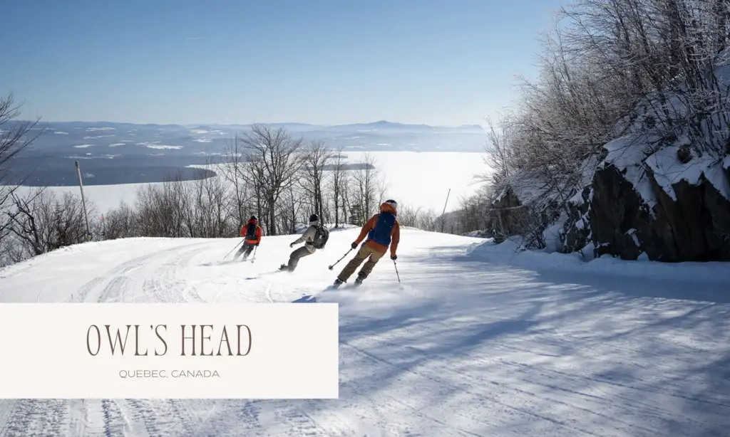 5- Owl’s Head (1h30 en coche): Conocida por sus espectaculares vistas sobre el lago Memphremagog, Owl’s Head ofrece una auténtica experiencia de esquí para toda la familia.