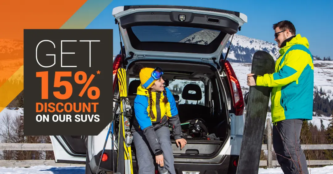 Reserva ahora tu SUV, perfectamente equipado para las duras condiciones invernales, y disfruta de un 15%* de descuento hasta el 5 de febrero de 2024. Embárquese en una escapada inolvidable a las más bellas estaciones de esquí, todas ellas situadas a unas 2 horas en coche de Montreal: